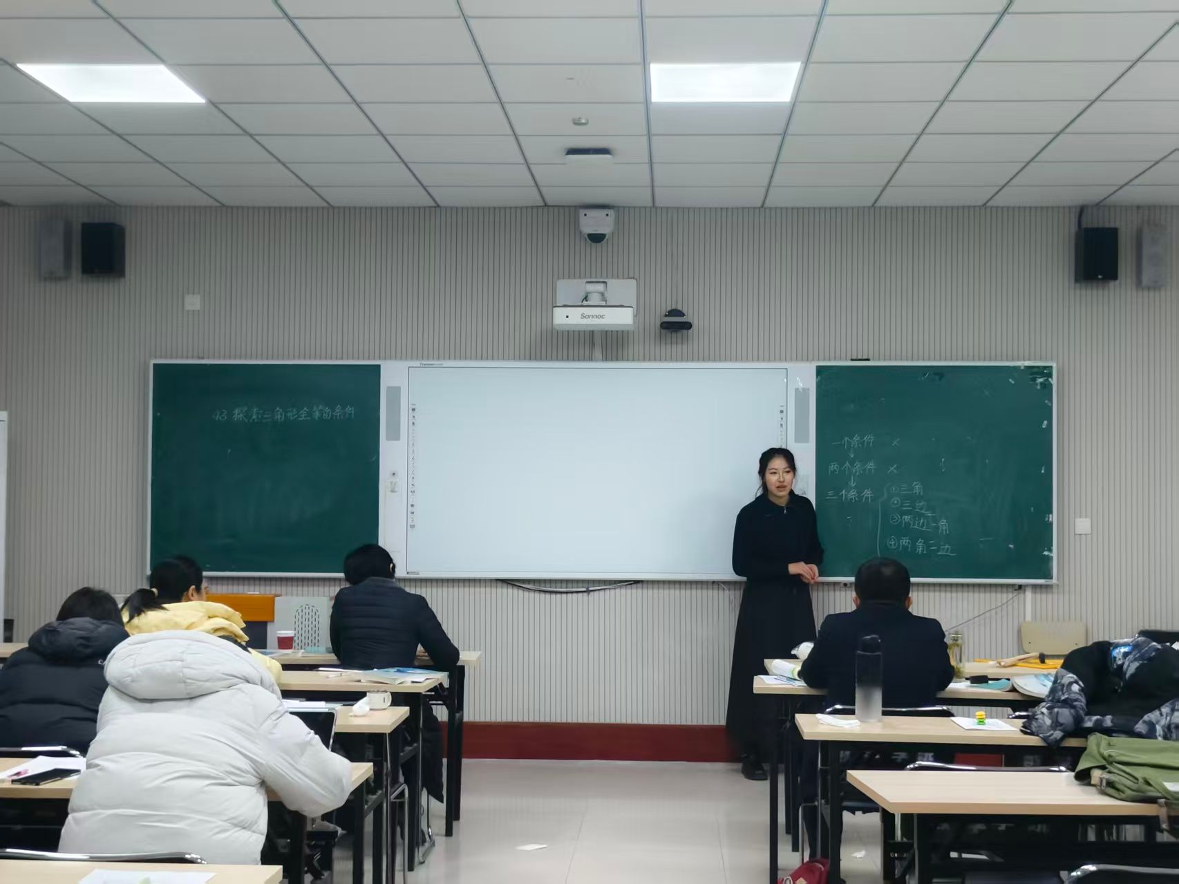 为更好地迎接第十四届山东省师范类高校学生从业技能大赛,精准提升参赛选手模拟授课能力、锤炼师范生教学基本功,数学学院于1月14日在一号教学楼B335教室举办了第十四届师范生从业技能大赛校级培育选手排名赛。本次活动分别邀请了小学数学、初中数学、高中数学三个学段各一名中小学一线教学名师担任评委,全体培育选手进行了观摩学习。