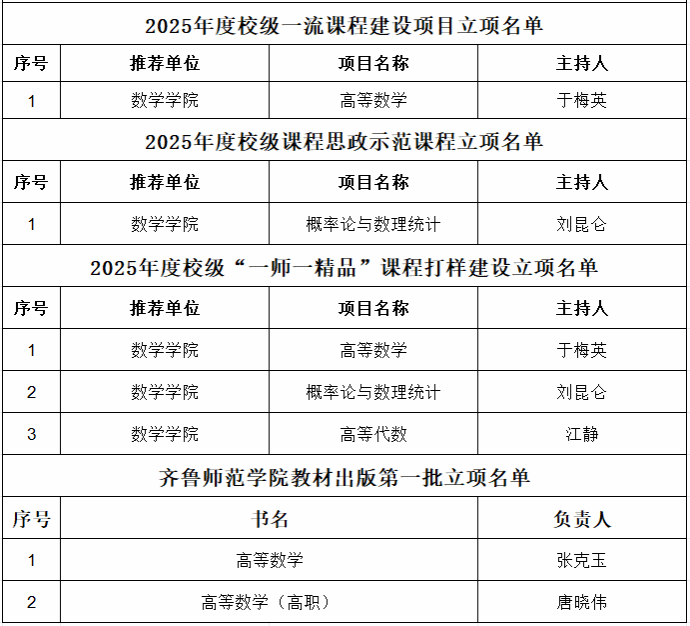 齐鲁师范学院课程建设及教材出版第一批立项名单