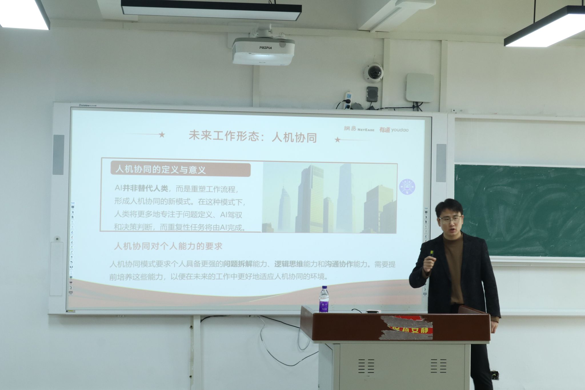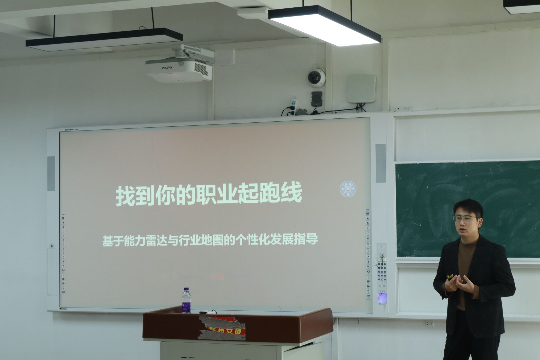 为引导学生树立科学职业规划理念,通过科学评估与行业认知找到个人能力与AI及数据领域的最佳契合点,11月27日,数学学院携手网易有道产教融合中心于一号教学楼A307举办“找到你的职业起跑线——基于能力雷达与行业地图的个性化发展指导”主题讲座。讲座特邀众阳健康科技集团校招总监金振剑担任主讲,2023级数据科学与大数据技术、数据计算及应用专业全体学生积极参与。