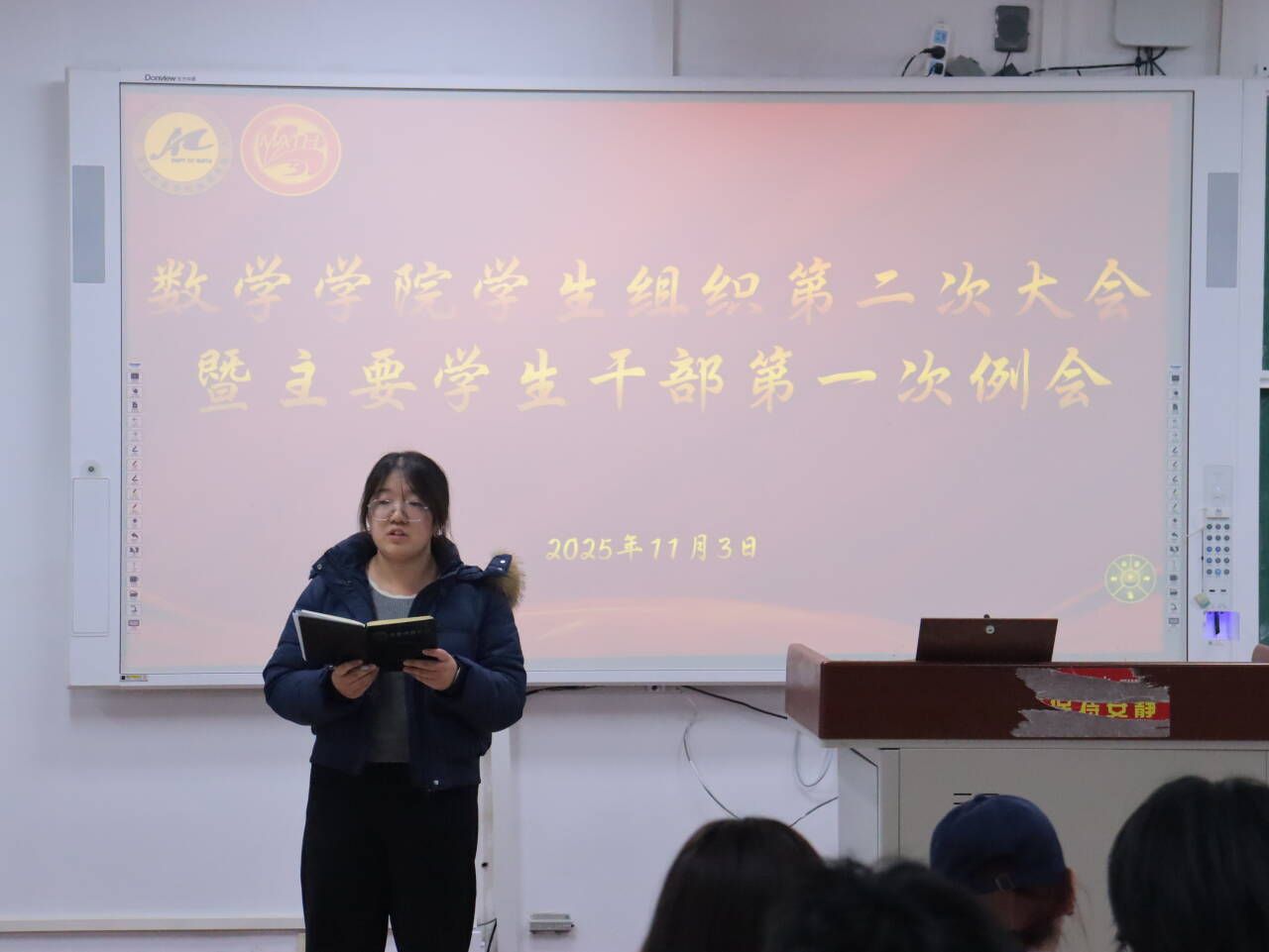 此次大会清晰梳理了学院学生工作重点与纪律规范,为后续高效推进凝聚共识、夯实基础。未来,数学学院学生组织及全体学生干部将锚定目标、锐意进取,确保各项决策部署落地生根,以实际行动服务同学成长,助力学院发展。