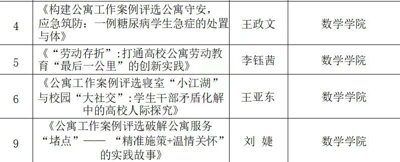 在辅导员公寓工作案例评选中,学院党委副书记李钰茜、团总支书记王亚东、辅导员王政文提交的案例荣获二等奖,团总支副书记刘婕荣获三等奖,体现了学院教师在育人一线的深入思考与实践创新。