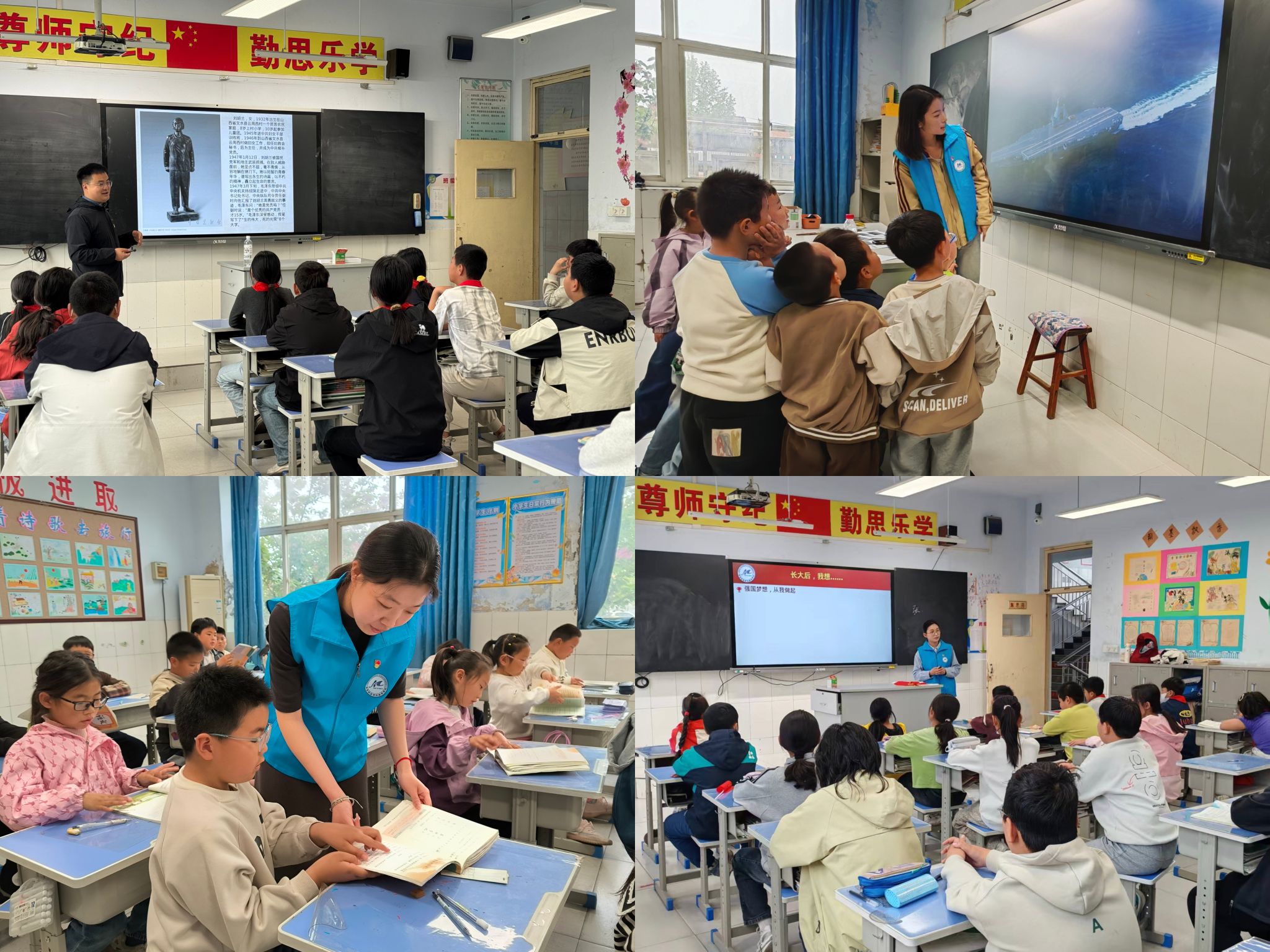 课堂上,学生党员按照既定分组走进各年级教室,围绕“党建+思政”主题,结合不同学段学生认知规律与接受特点,分层分类开展宣讲教学。王亚东专程为六年级学生讲授题为“崇高的信仰——美术经典中的党史”微党课,通过解读经典美术作品,引导学生在艺术赏析中感悟党的奋斗征程与信仰伟力。其他党员志愿者分别面向一至五年级,围绕红色故事、国家安全、爱国主义教育等内容,采用情景模拟、互动问答等形式分层教学,课堂气氛热烈。授课过程中,党员们耐心回应学生关切,在答疑解惑中播撒信仰火种,厚植家国情怀。