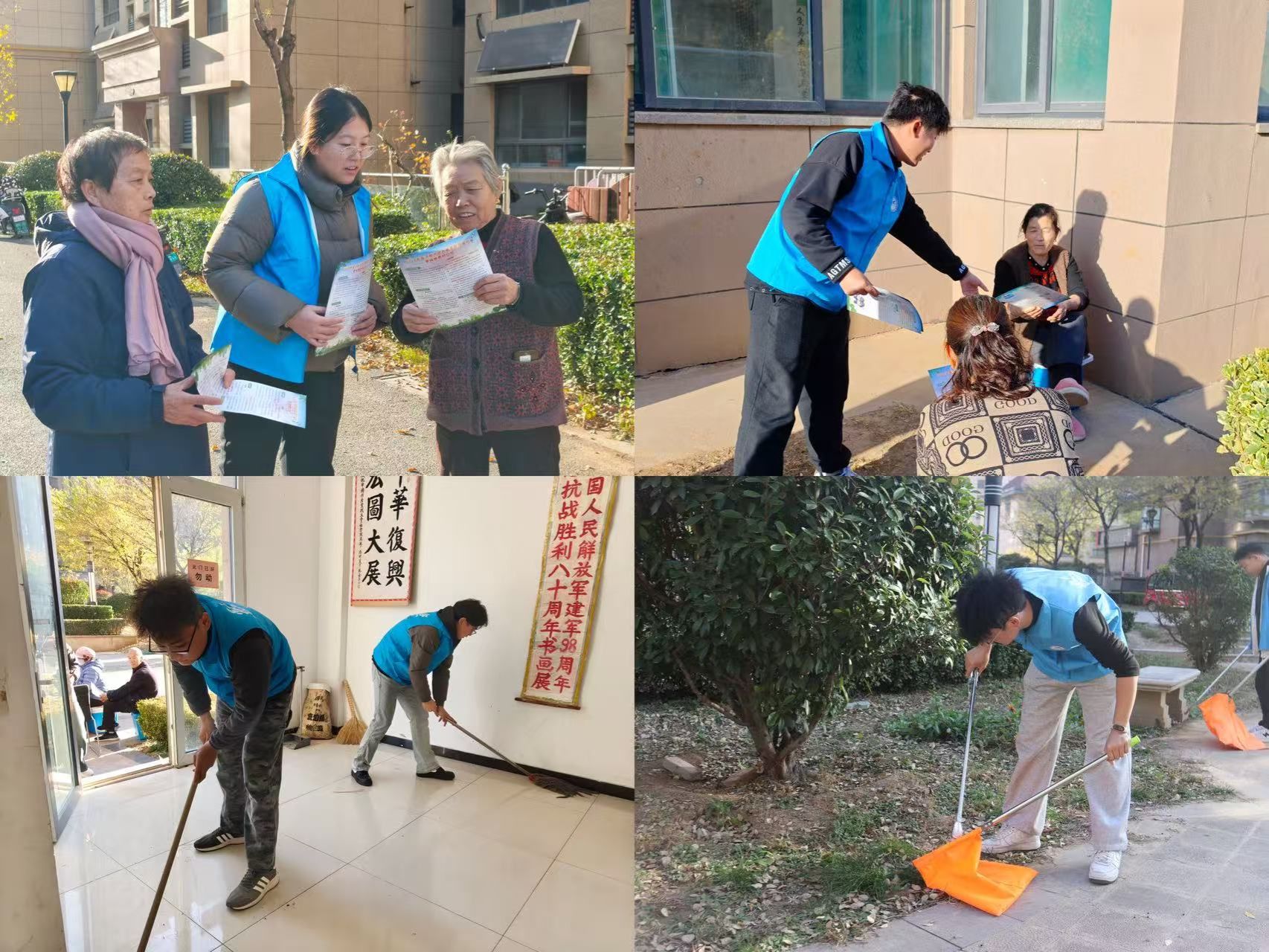 与此同时,社区其他志愿服务同步有序推进。在佳兴天城小区,志愿者们化身“政策宣传员”与“环境守护者”:一方面,通过发放宣传手册、一对一细致讲解,向居民全面解读医保政策等民生重点内容,尤其针对老年人、特殊群体的疑问耐心答疑,用通俗语言打通政策宣传“最后一公里”;另一方面,聚焦小区绿化带、公共楼道、卫生死角,集中清理垃圾杂物、乱贴乱画,以实际行动践行绿色环保理念,让社区环境焕然一新,用青春汗水扮靓宜居家园。