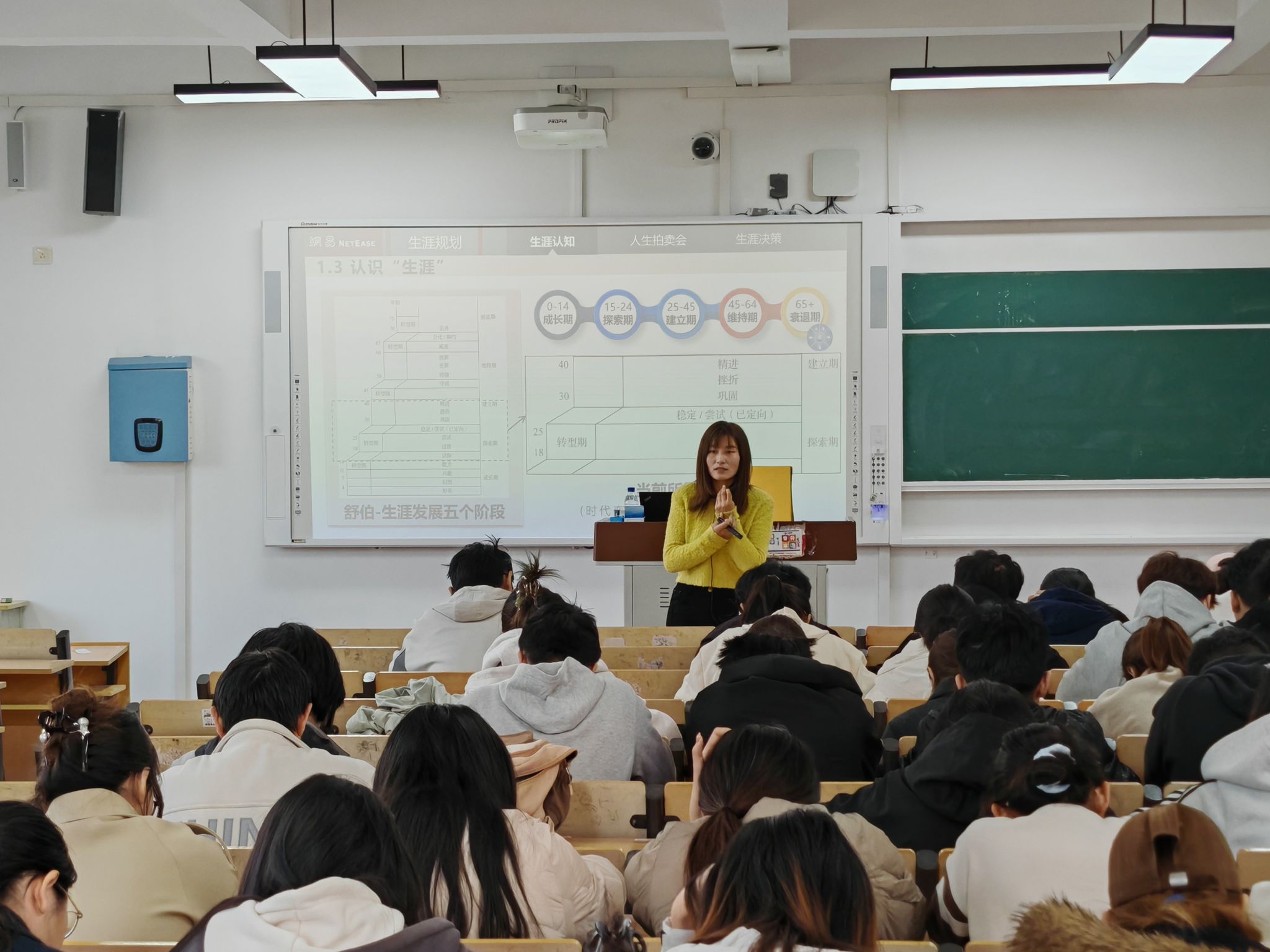 在核心分享环节,王绍敏指出,当前大学生普遍面临“内卷”与“躺平”的择业困境,其根源在于缺乏清晰的自我认知与系统规划。她强调,面对高校毕业生规模持续攀升的现状,生涯规划已从“可选项”转变为大学生应对时代变革、实现自我价值的“必修课”,唯有尽早确立方向、持续积累能力,方能在竞争中构筑个人优势,走出属于自身的成长路径。