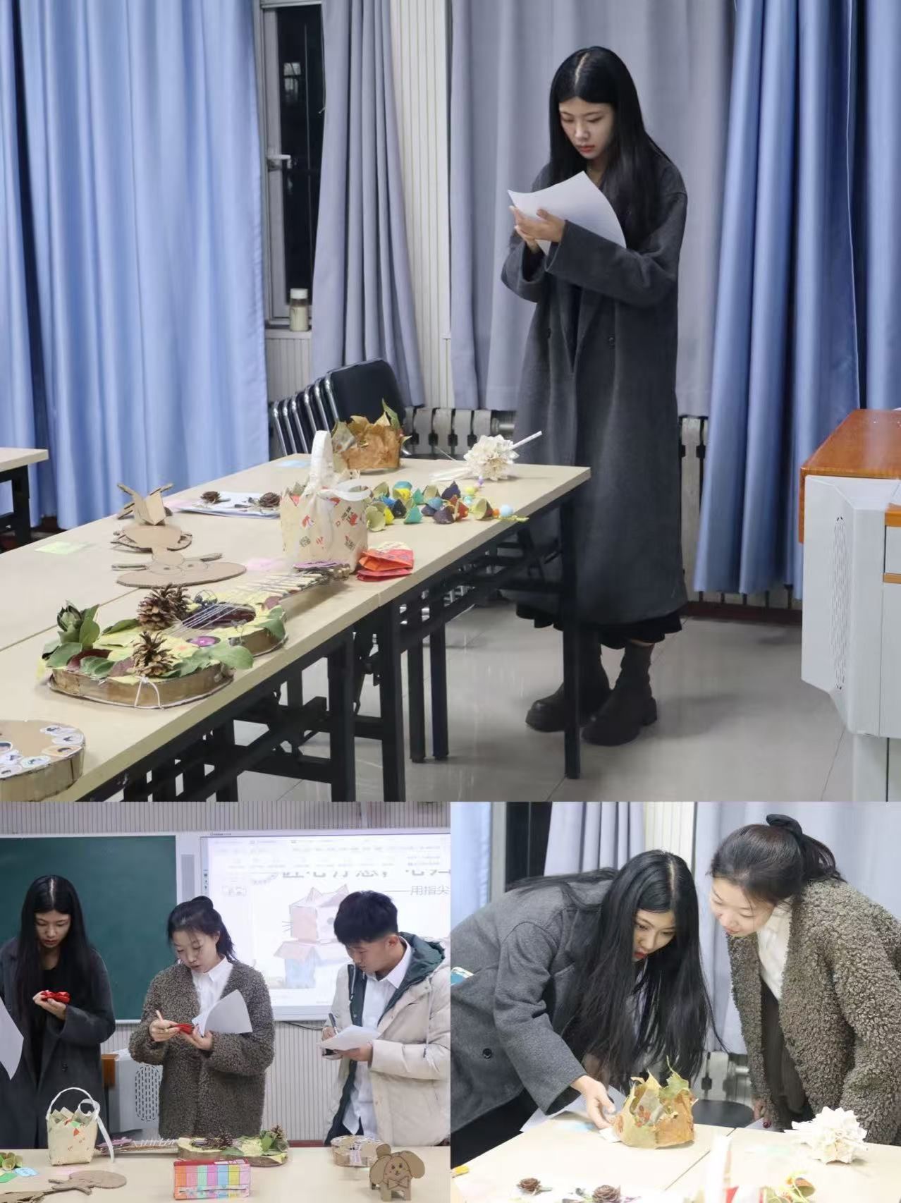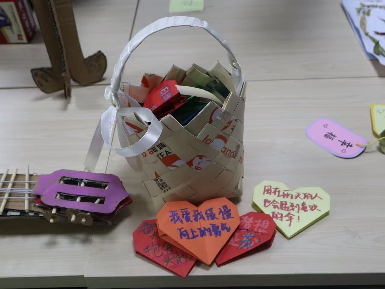 评选现场,一件件精巧别致的手工作品整齐陈列,涵盖创意摆件、实用收纳、艺术装饰等多种类型,充分展现了同学们出色的动手能力与鲜明的环保意识。评委们围绕创意表达、环保理念、疗愈价值、完成度与创新性等多个维度,对每件作品进行了细致评审与专业打分。经过严谨评议,最终评选出一、二、三等奖若干名,并邀请获奖代表登台领奖,共享指尖创作带来的喜悦与荣耀。
