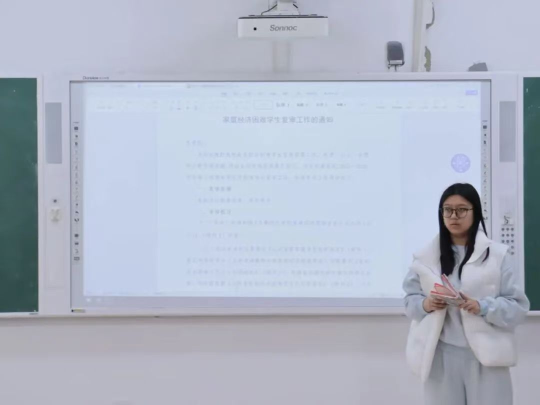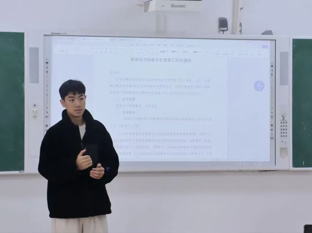 会上,学生会干部白筱围绕认定标准、申请流程、评议细则及注意事项全面解读,明确工作关键环节,强调恪守公平公正公开原则,规范操作、精准帮扶。学生会干部姜一博围绕本次工作作部署,叮嘱各班评议小组认真履职、细致审核、客观评议,同时做好政策宣传,推动政策全覆盖,传递学院关怀。