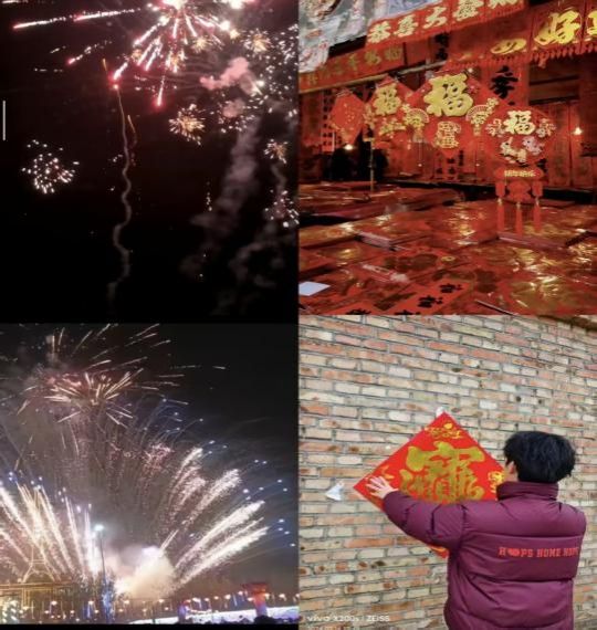 春节的热闹,是藏在每一抹红色里的仪式感。夜空被烟花点亮,金色的花火在墨色里绽放,把思念与期许都写进漫天星光里;街巷间挂满了春联与福字,红底金字的祝福贴满门窗,连空气里都飘着墨香与年的味道。