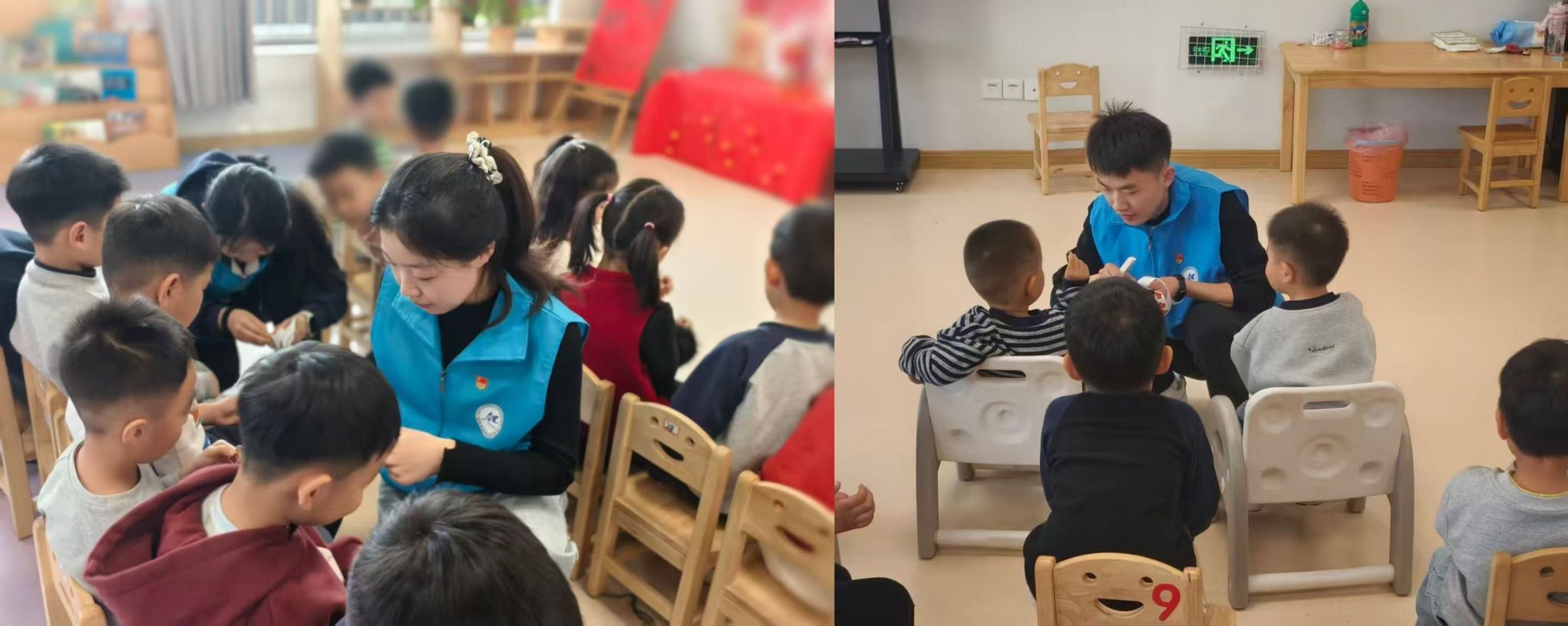 活动以铸魂育人为根本目标,以先锋服务为实践路径,构建“党员带头、团员跟进、党团协同”的联动格局,推动党建带团建工作走深走实。学院党员亮明身份、主动担当,带领团员将数学专业优势与红色教育、志愿服务深度融合,围绕雷锋精神传承、红色故事宣讲、爱国情怀培育等内容,精心设计趣味课堂、互动辅导、红色歌曲传唱等环节,既为幼儿园孩子们带来生动有趣的学习体验,也在实践教学中锤炼教学技能、提升沟通表达能力,实现志愿服务践初心与专业能力强本领的双向提升。